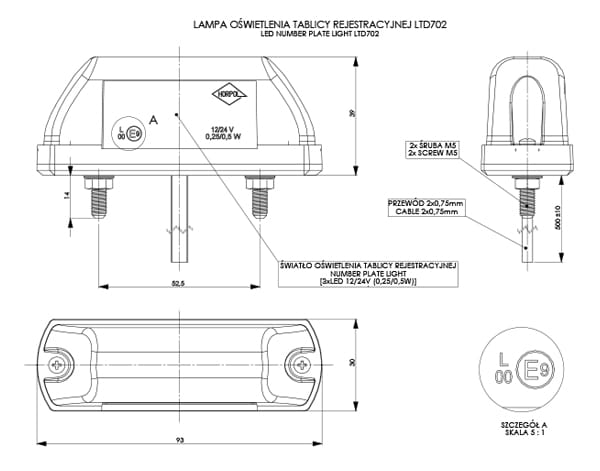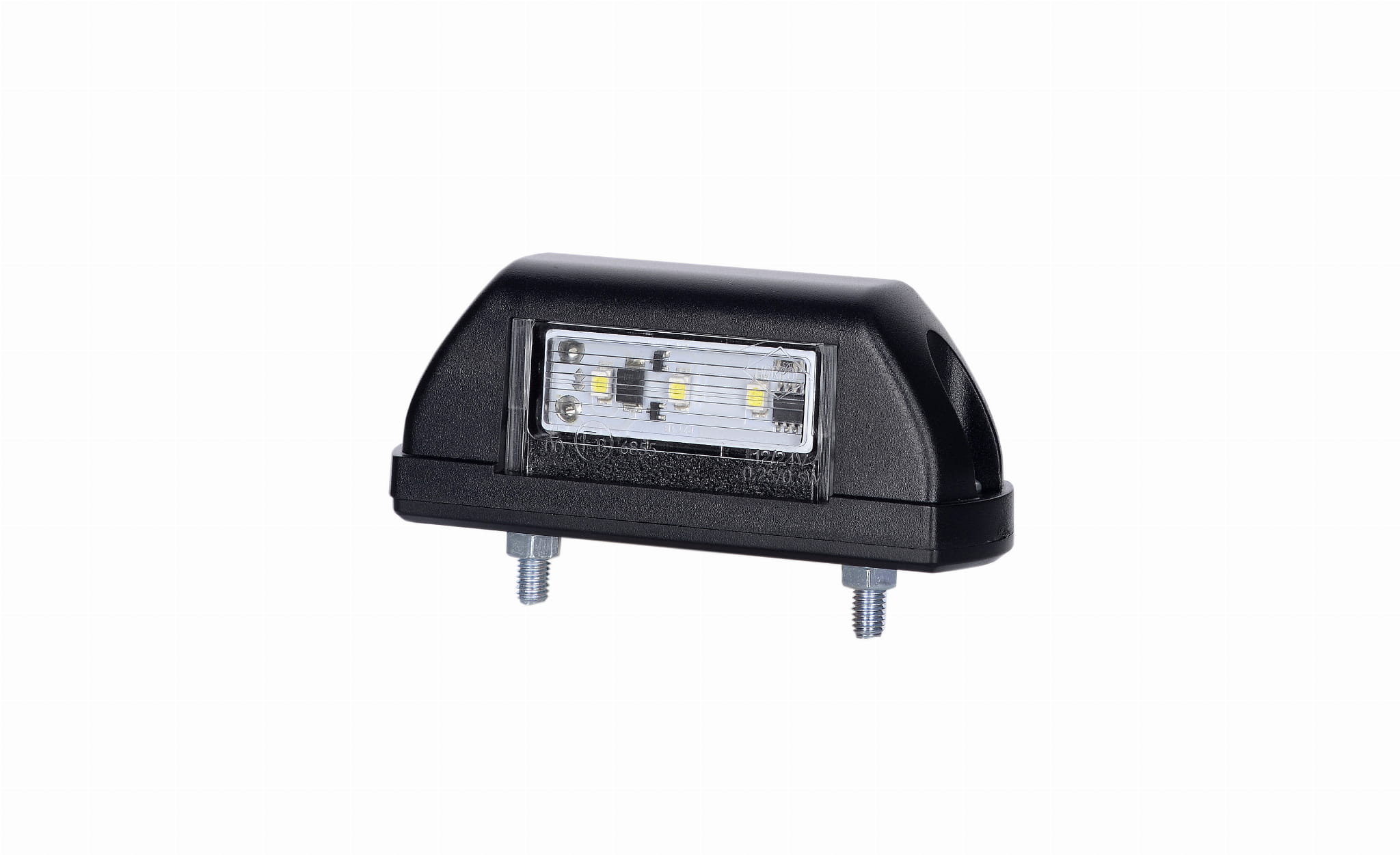Niewielka, kompaktowa, diodowa lampa oświetlenia tablicy rejestracyjnej. Indeks: LTD 702 Lampa oświetlenia tablicy rejestracyjnej uniwersalna – mała, czarna. Typ lampy: LED Dane techniczne Lampa diodowa (LED) tak Kategoria lampy oświetlenia tablicy Grupa lamp HOR 63 Strona montażu uniwersalna Napięcie zasilające 12/24V Moc znamionowa 0,25/0,5W Przewód 2×0,75mm2; 0,5m