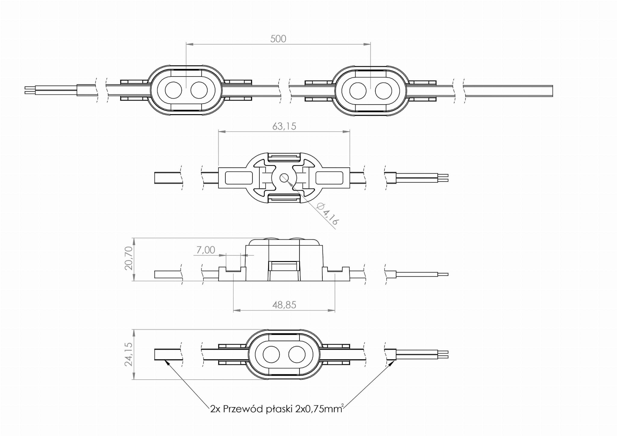 Lampa zakończona gniazdem i wtyczką Superseal na przewodzie płaskim 2x0,75mm2