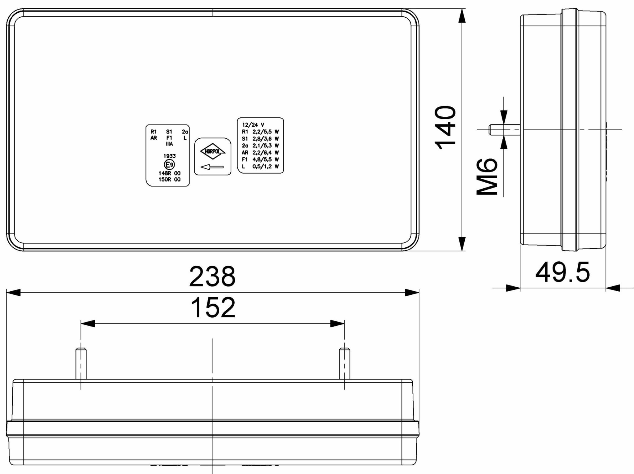 - Funkcje: Światło pozycyjne tylne, oświetlenie tablicy rejestracyjnej, odblask trójkątny, światło cofania, światło przeciwmgielne, światło hamowania, kierunkowskaz tylny