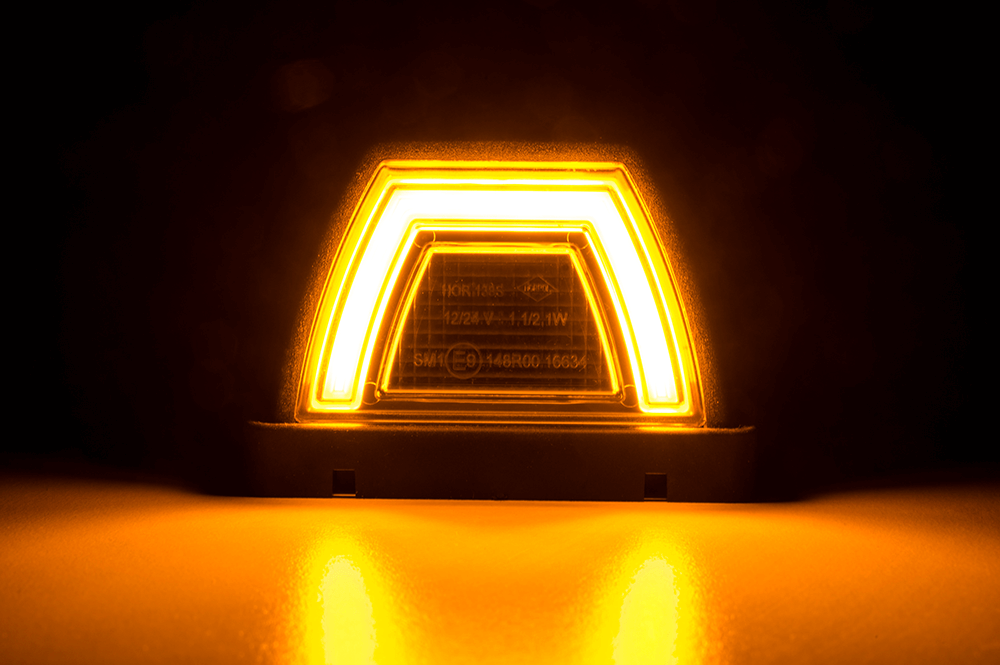 - Neonowe światło obrysowe – specjalna nakładka rozpraszająca emituje wyraźne, pomarańczowe światło, które jest dobrze widoczne, a jednocześnie nie oślepia innych uczestników ruchu.