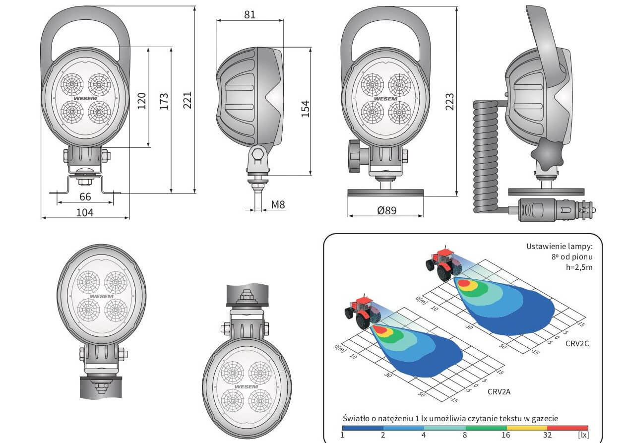 Lampa WESEM CRV2C.56100 to solidne i efektywne rozwiązanie oświetleniowe, które zwiększy bezpieczeństwo i komfort pracy w wielu zastosowaniach, w tym w rolnictwie, budownictwie i pojazdach przemysłowych.