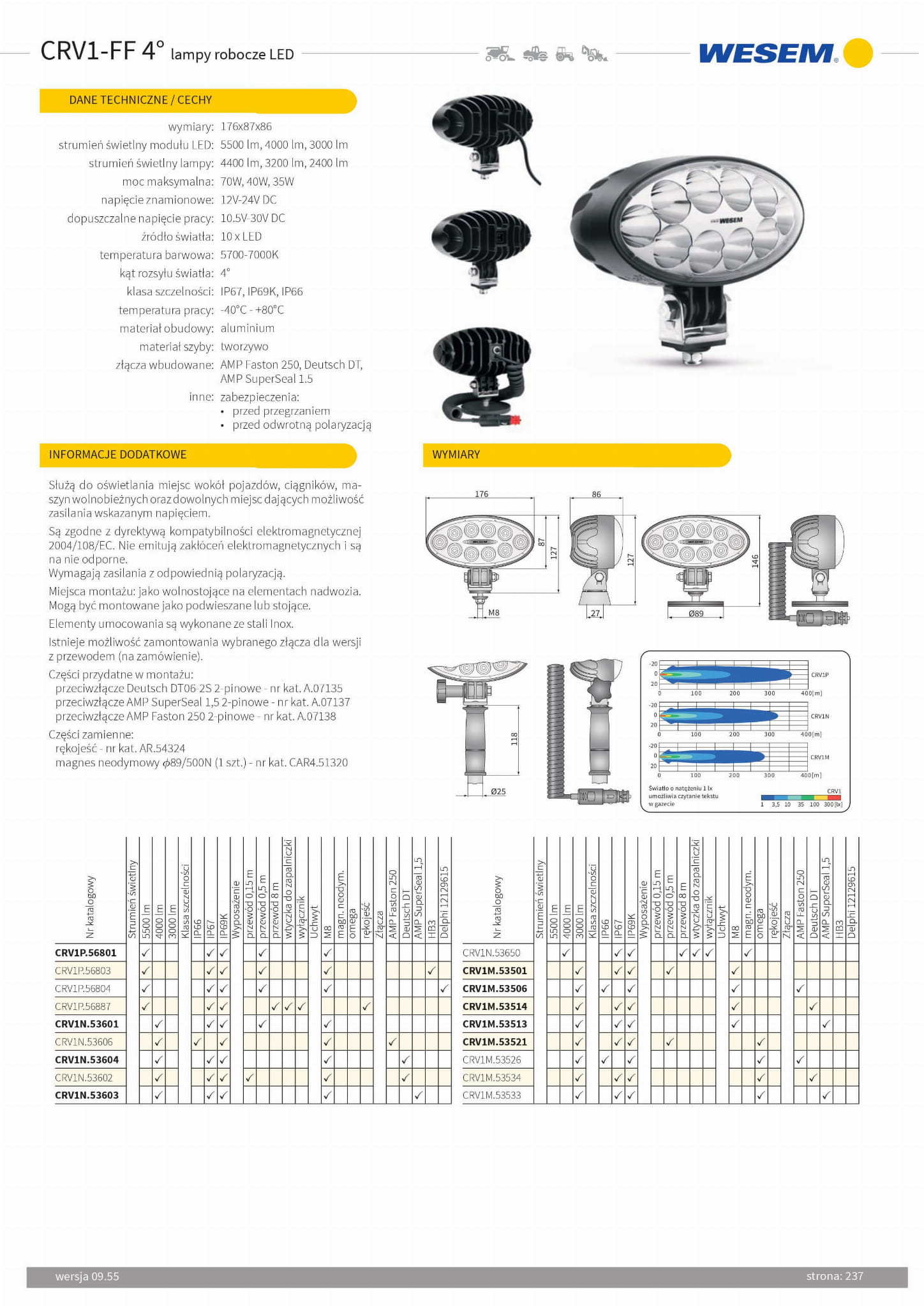 INFORMACJE DODATKOWE: Lampy CRV1-FF 4° to idealne rozwiązanie do oświetlania obszarów wokół pojazdów, ciągników, maszyn wolnobieżnych i innych miejsc, gdzie wymagane jest efektywne oświetlenie zasilane wskazanym napięciem.